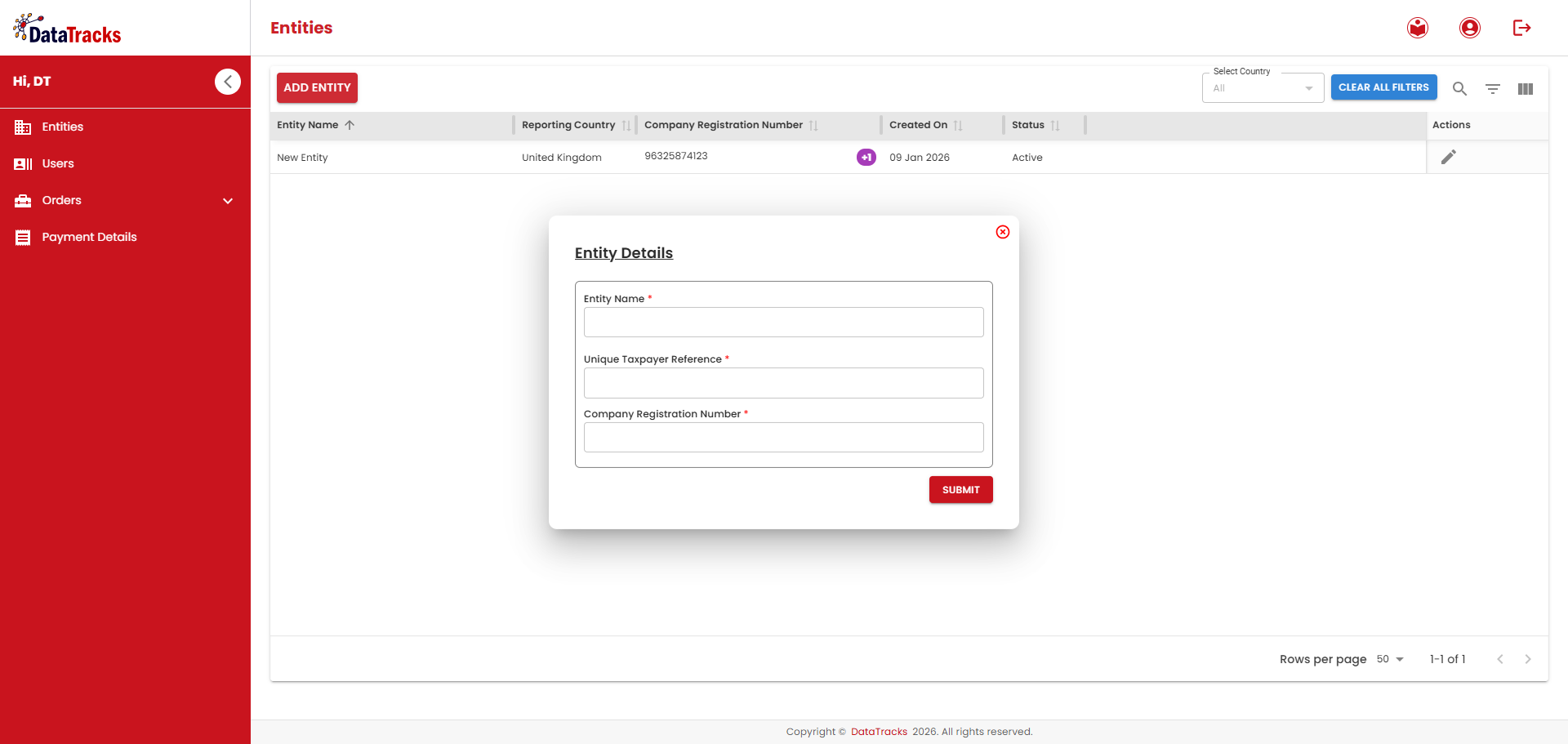 Reference (UTR) for the entity.
